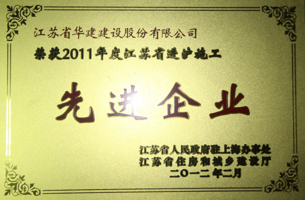 公司九獲“江蘇省進滬施工先進企業”稱號 時間:2012-03-20 5562 3月5日,在江蘇省政府駐滬辦、江蘇省住房和城鄉建設廳召開的2011年度江蘇進滬施工總結表彰大會上,江蘇華建被表彰為“江蘇省進滬施工先進企業”,這已是第九次獲次殊榮;表彰會上,上海洛克外灘源項目部被評為優秀項目部,另有5人被評為優秀建造師,各有1人被評為安全管理先進個人、質量管理先進個人、經營管理先進個人、財務管理先進個人。