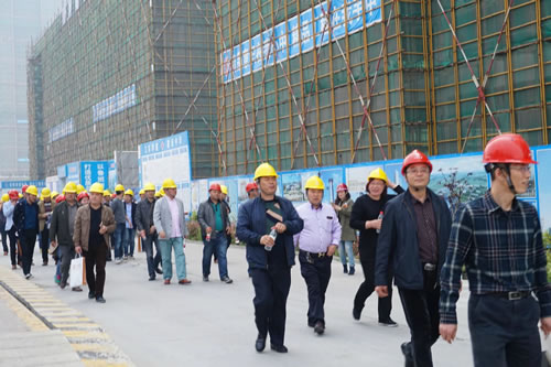 4月21日下午,江蘇華建蘇北分公司承建的泰州金融服務中心現場,彩旗獵獵,熱鬧非凡,泰州市創精品工程觀摩會隆重舉行,泰州市建工局副局長王京陵以及泰州市各市(區)建筑業主管部門工程創優負責人、建筑業協會負責人、全市二級以上資質企業總工程師、技術負責人、創優企業總工程師、項目經理、技術負責人等共計400人參加了觀摩活動,與會人員對江蘇華建在建設金融服務中心興業大廈過程中創下了江蘇泰州地區多個之最表示了濃厚興趣,多個之最包括:高度最高(地上58層、設計高度: