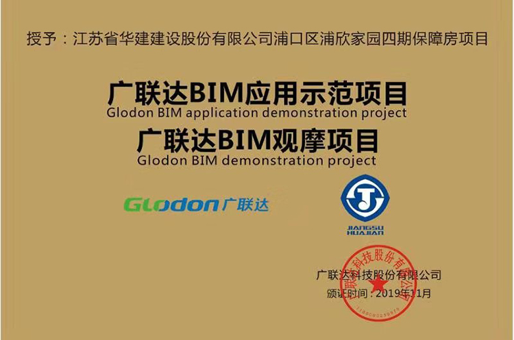 11月10日,公司承建的南京浦欣家園四期保障房項目獲“廣聯達BIM應用示范項目”、“廣聯達BIM觀摩項目”榮譽稱號,系江蘇華建首個獲得該稱號的項目。
