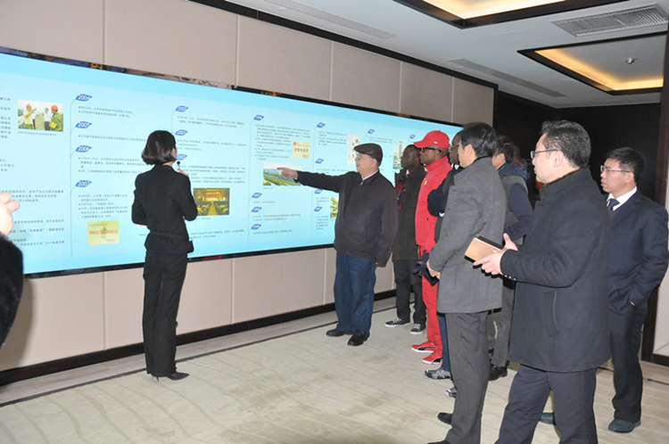 客人在陸董事長(zhǎng)陪同下參觀了華建展示中心,簡(jiǎn)單的午餐后在會(huì)議室進(jìn)行了交流與會(huì)談。陸董事長(zhǎng)首先介紹了華建的基本情況,特別是打造“三個(gè)共同體”以及與員工和合作方分名、分利、分未來(lái)的運(yùn)營(yíng)機(jī)制,最后希望能夠借助我國(guó)“一帶一路”戰(zhàn)略與海山國(guó)際聯(lián)合共同參與安哥拉的城市建設(shè)。安方用PPT介紹了2013-2017年的遠(yuǎn)期發(fā)展規(guī)劃和首都羅安達(dá)近期的發(fā)展設(shè)想,希望江蘇華建這樣有實(shí)力的中國(guó)國(guó)有企業(yè)積極到安哥拉拓展市場(chǎng)。陸董事長(zhǎng)最后還接受了安哥拉國(guó)家電視臺(tái)隨行記者的采訪,并與科魯茲·內(nèi)圖秘書(shū)長(zhǎng)、巴依相·朱紐主席等貴賓親切合影。