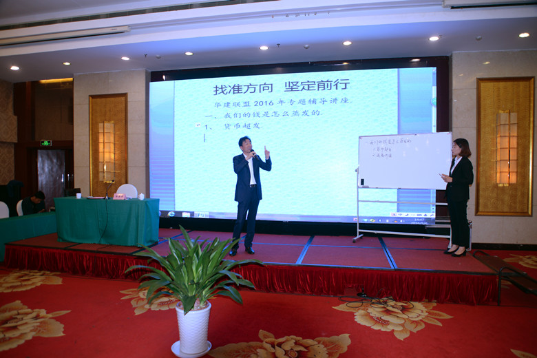 陸主席從過去建筑行業是平面思維,解的是一元一次方程,現在是立體思維,解的是三元三次方程引入,從貨幣超發、遠離價值、抄底三個方面首先說明我們的錢是怎么蒸發的,從平民滅于P2P、中產滅于股市、土豪滅于信托高利債三個層次分析了錢沒有了的三個通道。他說,過去是產品時代,現在是服務時代乃至是生活時代,以“九維”思維才能跟上時代的腳步。他從時間、空間、角度詳細介紹了“九維”思維,“時間”是指過去、現在、未來,空間是指商業、事業、神業,角度是指我、你、他。未來決定過去和現在,懂得商業的人才懂得道,商業就是交換,透過商業上升到事業,進而達到神圣的事業。通過九維,我們才能明白當下經商需要的境界。當前的行業勢已經介于C點與D點之間,開始下坡路,產品勢必須有超前意識才有競爭力,團隊勢必須解決動力和阻力的問題,動力就是食、性、愛,阻力就是恐懼和惰性,處于上升勢的團隊才有戰斗力。他強調說,聯盟合作必須遵循三個法則:魚缸法則、空靈法則、同頻法則。魚缸法則就是要擴大生存空間,空靈法則就是在新常態新業態下要有新的玩法,做好“四個刪除”:刪除混濁進入純潔、刪除外圍進入核心、刪除腦進入心、刪除疲憊進入放松,同頻法則就是要境界提升、思維提升、價值提升才能達到同頻。陸主席說,文化絕對認同、能量必須匹配、持續智慧成長、走向合伙創業,是聯盟合作的基礎。他認為,民營企業怎么干就是要不設限、無邊無際,三大要素就是:你干的事是剛需的、供應鏈金融、聯盟。當前信用缺失的社會更需要契約精神。陸主席啟發大家,學習的意義是引發新的思維和方向,并讓自己深度思考和覺悟,進而改變自己未來的命運。學習的通道是讀萬卷書、行萬里路、高人指路、閱人無數、自己頓悟,最終都不如直接進入,即從體驗入、與實相合。他指出,民營企業家要為真人、做正事、會造場。當下經商(過渡時期)要經歷三個時代:審判時代(2014—2016年)、覺醒時代(2017—2019年)、覺悟時代(2020—2022年)。時間是個神,能解決一切問題,罩見未來十年,是立體的動態的。早點覺醒,知道風口在哪,就知道未來怎么干。時代就像潮汐一樣有高潮有低潮,有堅定之心、感恩之心、成長之心、擔當之心就能贏得未來。貴族就是要有自由的靈魂、文化教養和社會擔當。陸主席三元三次方程“九維”的精彩講座打開了企業家的思維,為開創未來奠定了堅實的思想基礎。