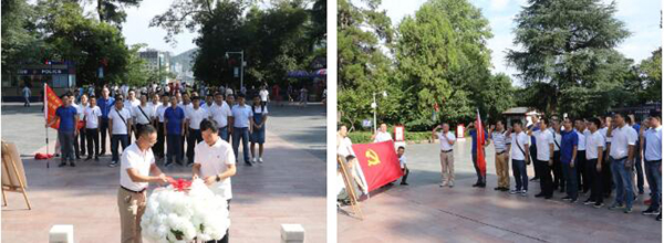 在鳳凰山烈士陵園,學員代表向烈士敬獻花籃并瞻仰鄧萍烈士墓,江蘇省駐瓊建工企業(yè)黨委委員高家馴帶領大家重溫入黨誓詞,全體學員右手抱拳高高舉起,莊嚴宣誓,堅定有力的宣誓聲響徹廣場。