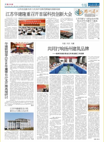10月28日《揚州日報》B3整版刊發(fā)“揚州建工”專版,主要包括江蘇華建首屆科技創(chuàng)新大會、華...
