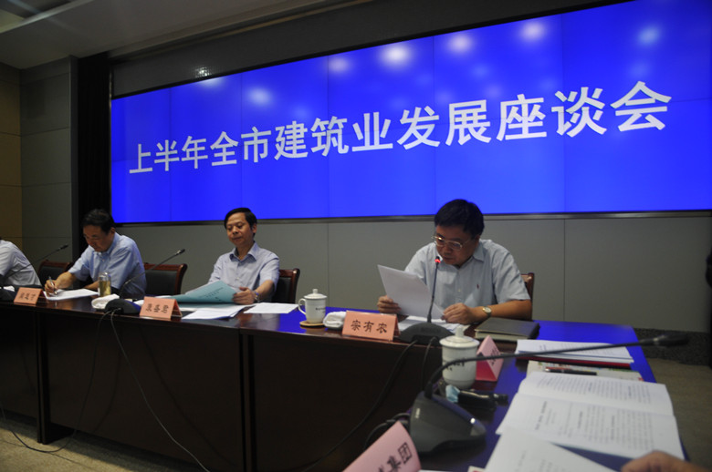 8月29日上午,揚州建工控股、江蘇華建總經理宗有農在揚州市政府會議室參加上半年全市建筑業發...