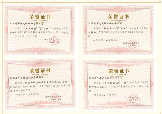 近日,揚州市建筑業協會公布了2023年度全市建筑業QC小組活動成果獎獲獎名單,江蘇華建榮獲...