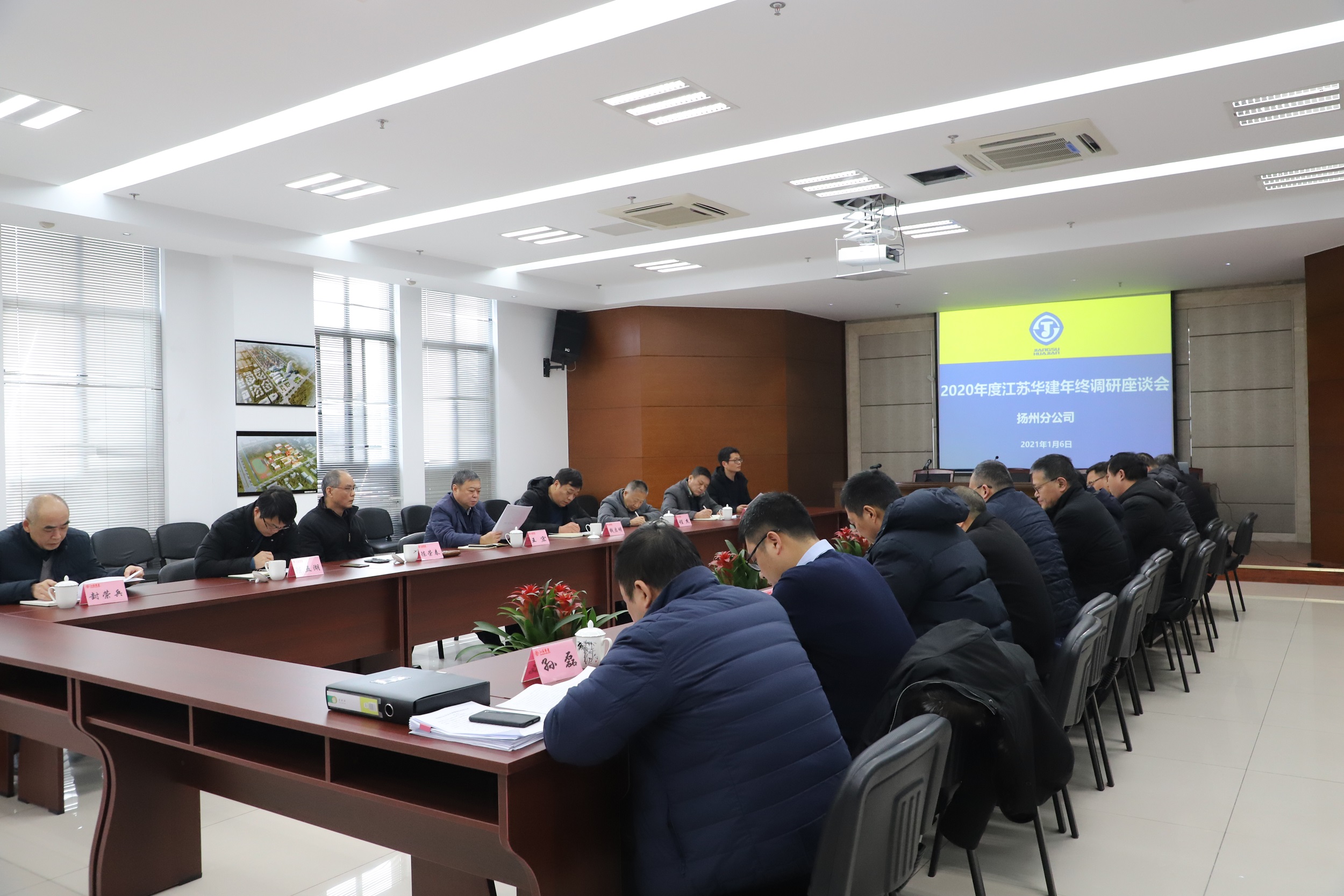2021年元月6日下午,建工控股董事長王宏率在揚班子成員于揚州分公司一樓會議室開展2020...