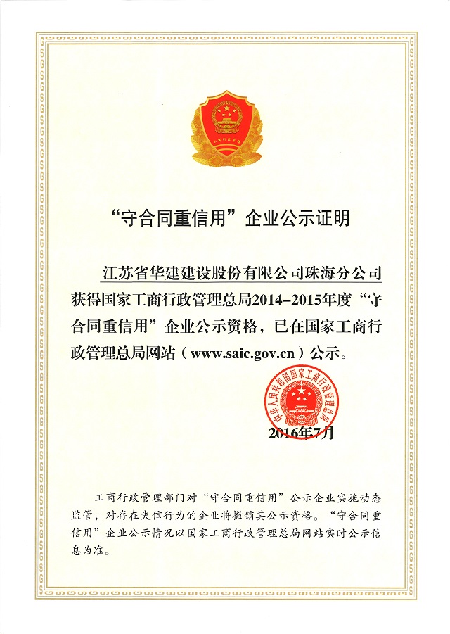 2016年10月28日下午,珠海市工商行政管理局舉行2014—2015年度國家“守合同重信...