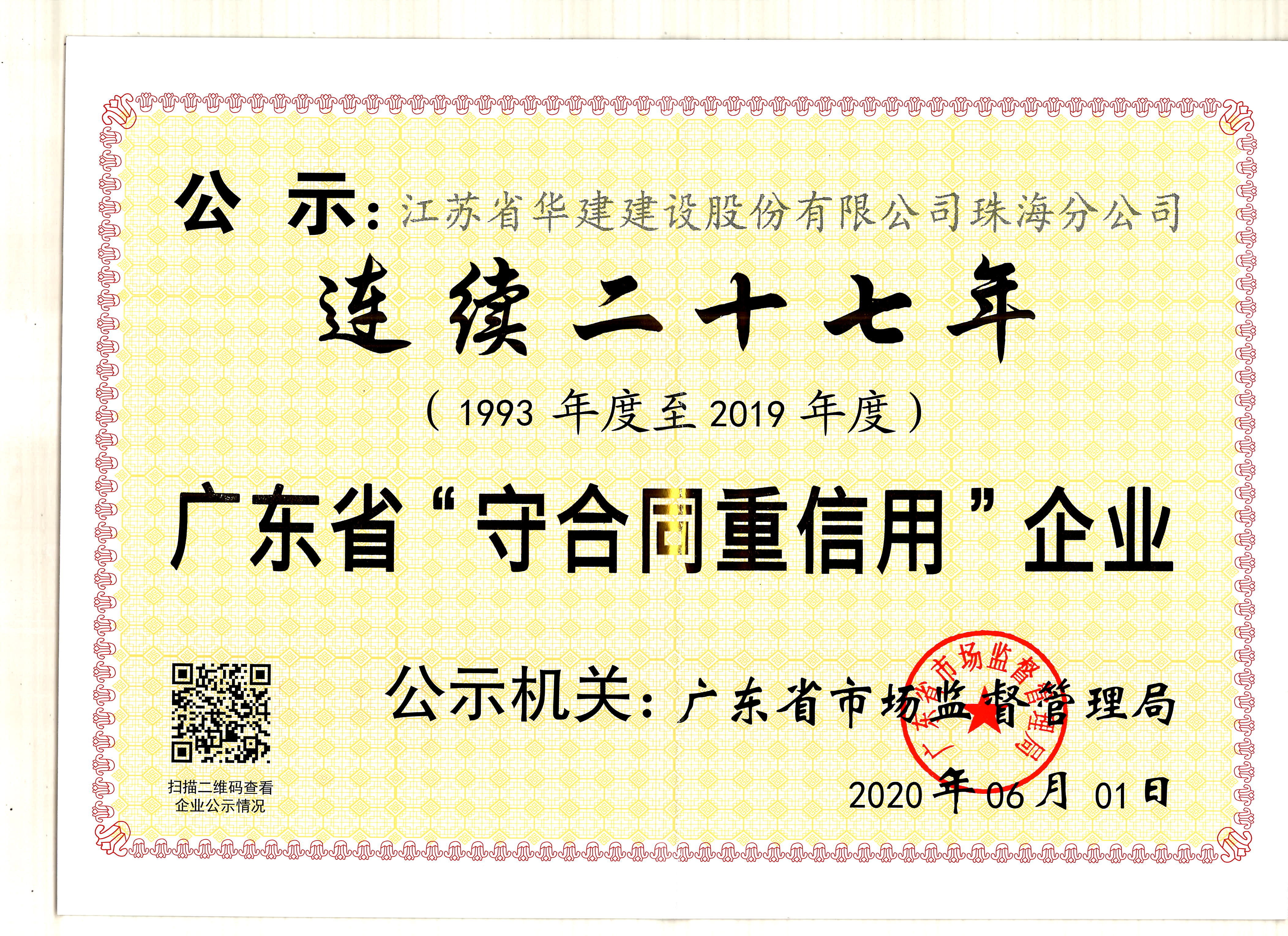 連續二十七年廣東省守合同重信用企業