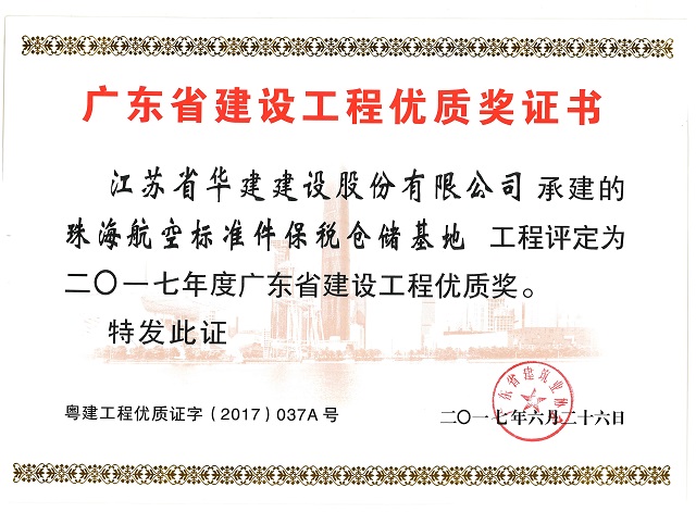 珠海航空標準件保稅倉儲基地2017年度廣東省建設(shè)工程優(yōu)質(zhì)獎