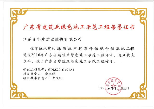 珠海航空標準件保稅倉儲基地工程廣東省建筑業(yè)綠色施工示范工程