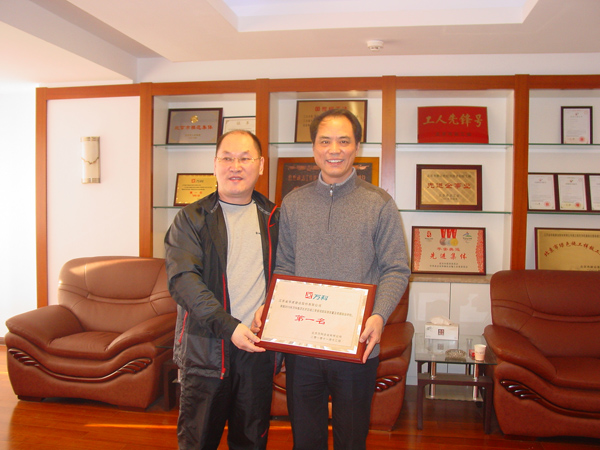 北京公司在萬科地產第三季度萬科北京區域在建項目產品質量評估中,萬科藍山項目經專家現場實測實量,390個點合格率為99.39%,觀感質量評分、質量風險評估綜合得分97.35%,項目綜合排名蟬聯第一。1212上午,北京萬科副總經理孔祥明率工程部經理、項目總經理等一行,特地趕到我公司,把第一名的獎牌隆重授予我公司陳榮春總經理。陳總對萬科的肯定和信任表示感謝,并期望雙方進一步加強友好合作,永續真誠友誼。