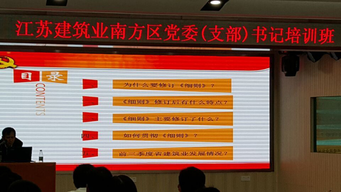 會上,江蘇省住房和城鄉(xiāng)建設(shè)廳機(jī)關(guān)黨委副書記丁舜祥針對《中國共產(chǎn)黨發(fā)展黨員工作條例》作了專題講座,詳細(xì)講解工作條例的主要內(nèi)容和特點(diǎn)、發(fā)展黨員工作的總要求、發(fā)展黨員工作的基本原則、黨員發(fā)展的條件標(biāo)準(zhǔn)、發(fā)展黨員的主要流程等方面內(nèi)容,并針對南方地區(qū)基層組織發(fā)展中存在的一些問題提出了明確要求。江蘇省住房和城鄉(xiāng)建設(shè)廳駐南方辦事處主任朱躍斌傳達(dá)了《住建廳黨組書記顧小平在廣東省調(diào)研重要講話指示精神》以及《住建廳駐外辦事處民工工資清欠工作精神》,并對建筑企業(yè)的進(jìn)一步發(fā)展提出了指導(dǎo)性意見。