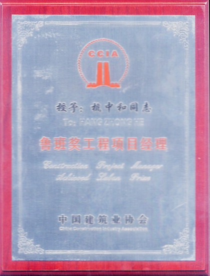 杭中和,高級工程師,高級經濟師,現任深圳公司七處黨支部書記。曾任七處主任多年,先后擔任深圳招商銀行大廈等一批高大難工程的項目經理,創魯班獎工程1項,曾獲“全國建筑業企業優秀項目經理”稱號,被授予“創魯班獎工程項目經理特別證書”。