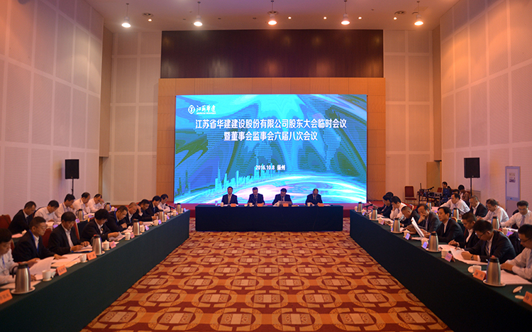 10月8日上午,公司股東大會臨時會議、董事會監事會六屆八次會議、董事會六屆九次會議在揚州會議中心召開。華建股東單位代表,董事會、監事會成員,各區域公司和各分支機構負責人、其他列席人員共50余人參加會議,宗有農總經理主持會議。