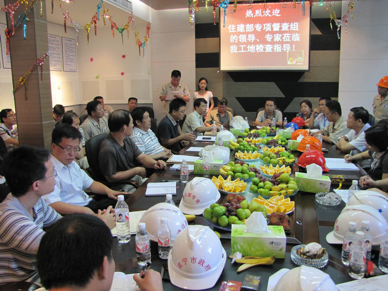 住建部建筑施工安全專項督查組檢查指導廣西麗原•天際城項目 時間:2010-10-14 5370 9月18日上午,國家住房城鄉建設部建筑施工安全專項督查組蒞臨我公司廣西麗原·天際城工地檢查指導工作,勘察了施工現場的實體安全狀況,查閱了施工質量安全技術資料,檢查了我公司的資質、安全許可、三類人員與特種作業人員持證的情況。項目部的安全防護與文明施工工作受到了督查組的一致好評,住建部工程質量安全監管司王樹平副司長在知道我們爭創“魯班獎”的情況后,提出了許多寶貴的意見,并預祝我們的質量目標得以圓滿實現。 另訊,此前麗原·天際城工程項目被評為2010年上半年廣西自治區文明工地。
