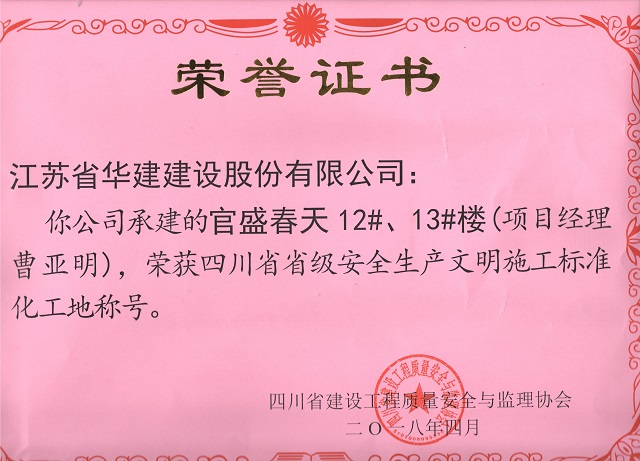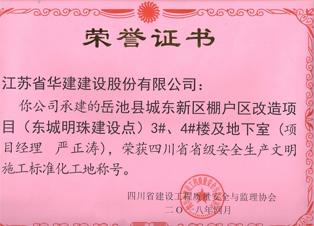 重慶分公司2項目獲評“四川省安全生產文明施工標準化工地” 時間:2018-04-20 3175 4月18日,重慶分公司項目創優再獲新成果,公司承建的岳池縣城東新區棚戶區改造項目(東城明珠建設點)3#、4#及地下室、官盛春天12#、13#樓被四川省建設工程質量安全與監理協會評為“四川省省級安全生產文明施工標準化工地”。至此,重慶分公司獲省級標化工地獎項已達3項。
