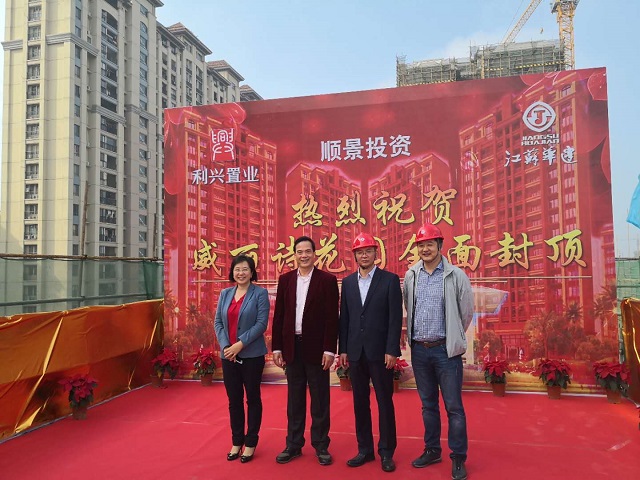 陽江威麗詩花園2期項目全面提前封頂 時間:2019-01-15 2662 2019年1月14日,第一項目部承擔施工任務的陽江威麗詩花園2期項目提前60天實現主體結構全面封頂。珠海利騰集團董事長黃金紅、總經理譚劍云,江蘇華建珠海區域公司總經理呂方達等參加封頂儀式。 威麗詩花園2期8~10棟住宅及地下室、12~15棟住宅及地下室、16棟住宅及地下室(含商業裙樓)、17~18棟住宅及地下室、19棟住宅及地下室(含商業裙樓)土建及水電安裝工程。該工程含商住樓共11棟,其中地下室建筑面積約34378平方米、地上建筑面積約127468平方米,總建筑面積約161847平方米。
